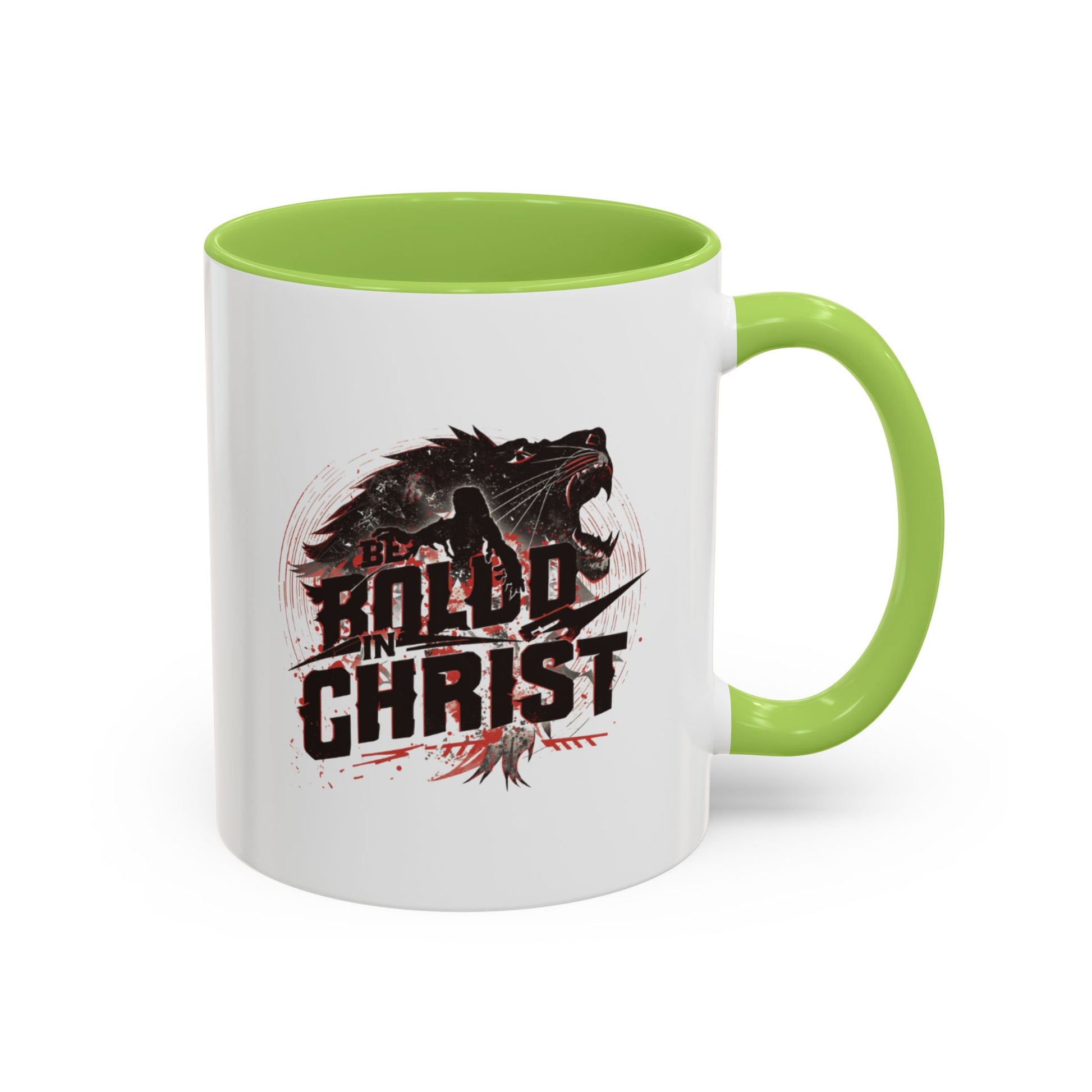 Be Bold In Christ mug | Christian wolf graphic, black accented coffee mug