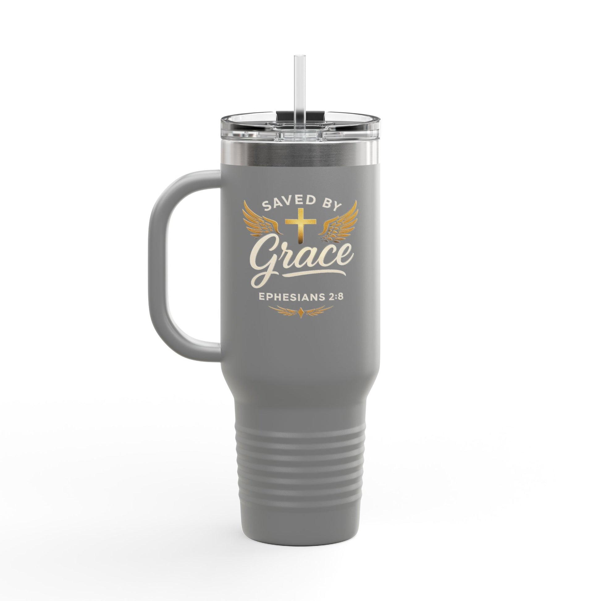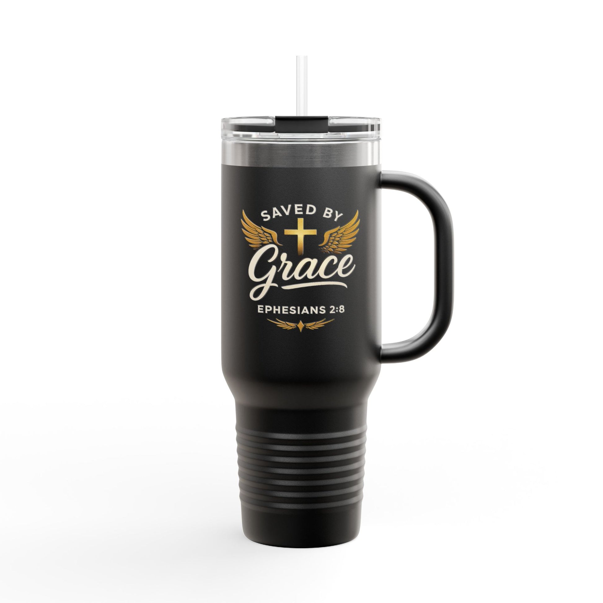 Christian Insulated Travel Mug - Saved by Grace Ephesians 2:8, Perfect for Faith-Based Gifts, Road Trips, Coffee Lovers, Encouragement