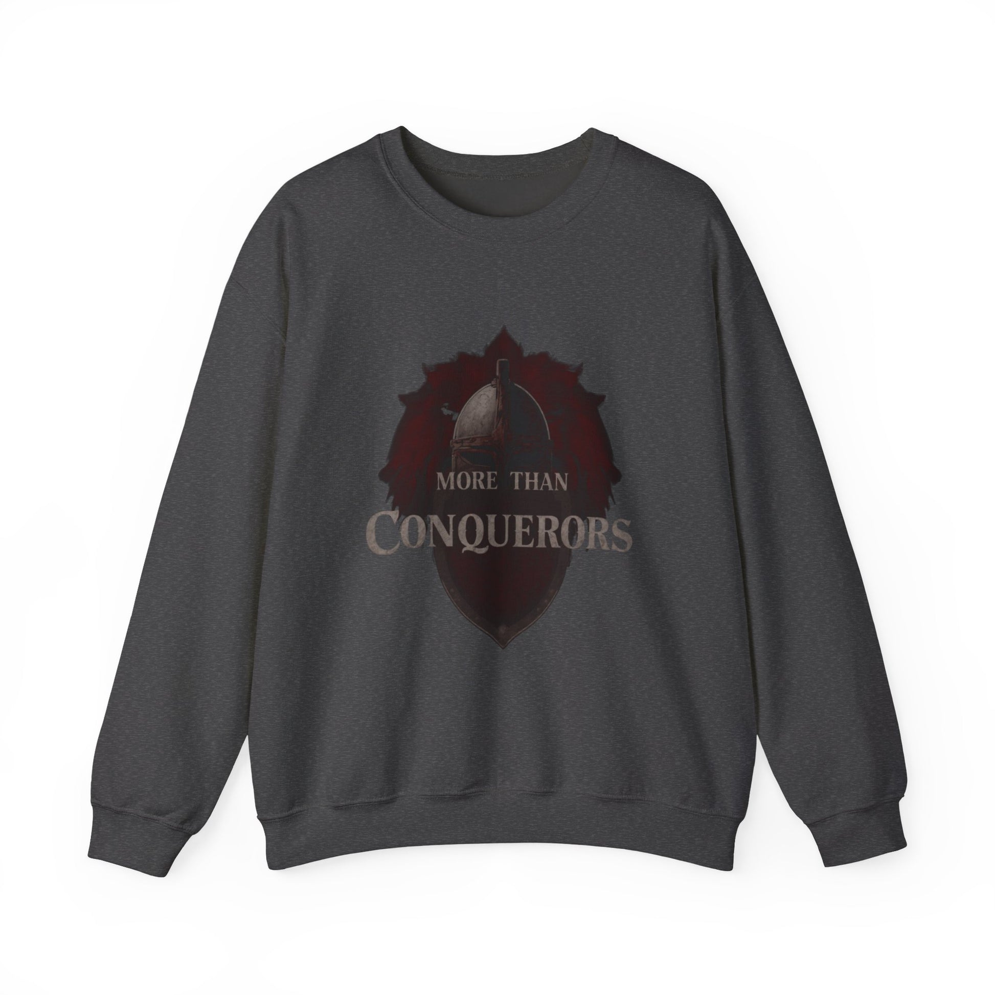 More Than Conquerors Shield Crewneck Sweatshirt | Christian Faith Scripture