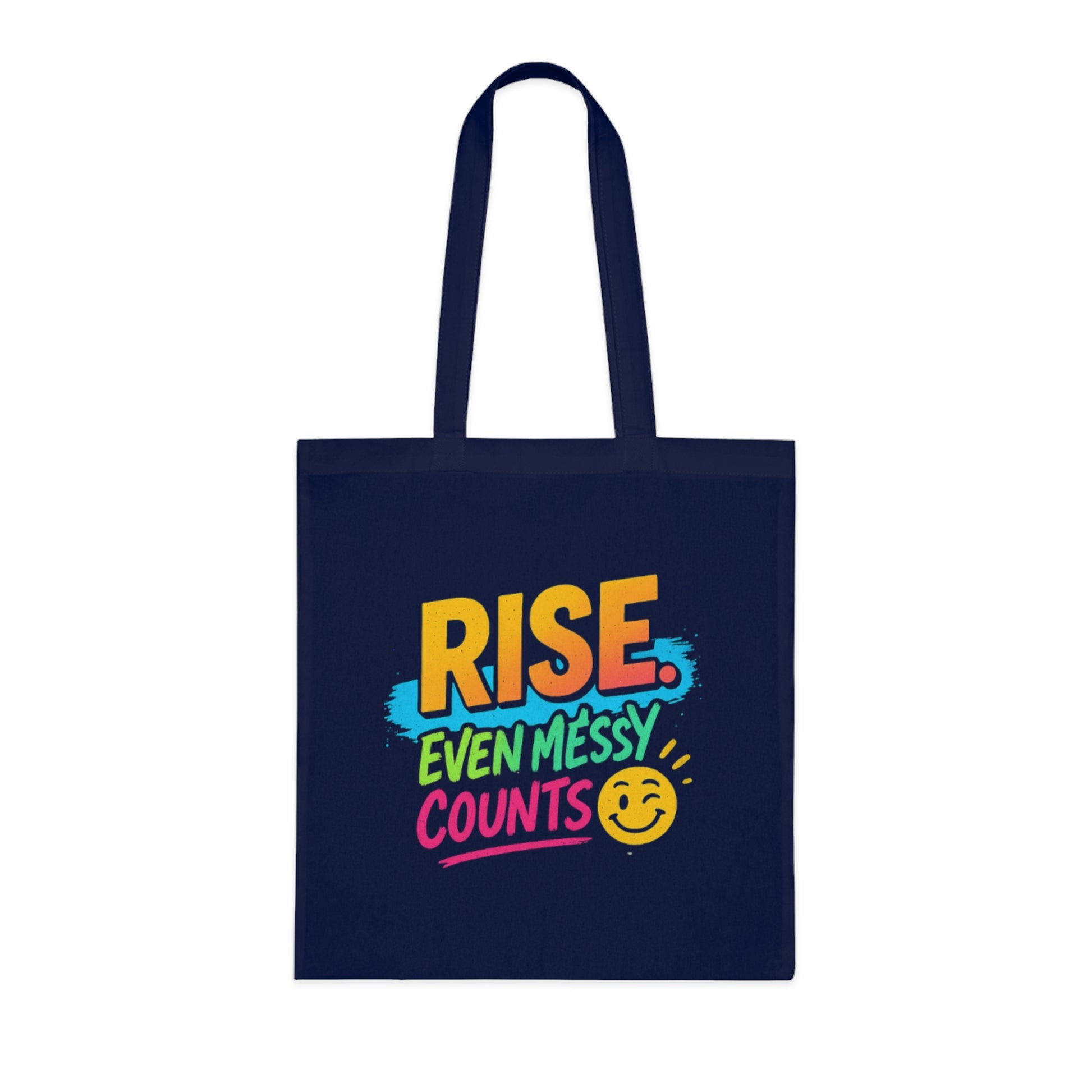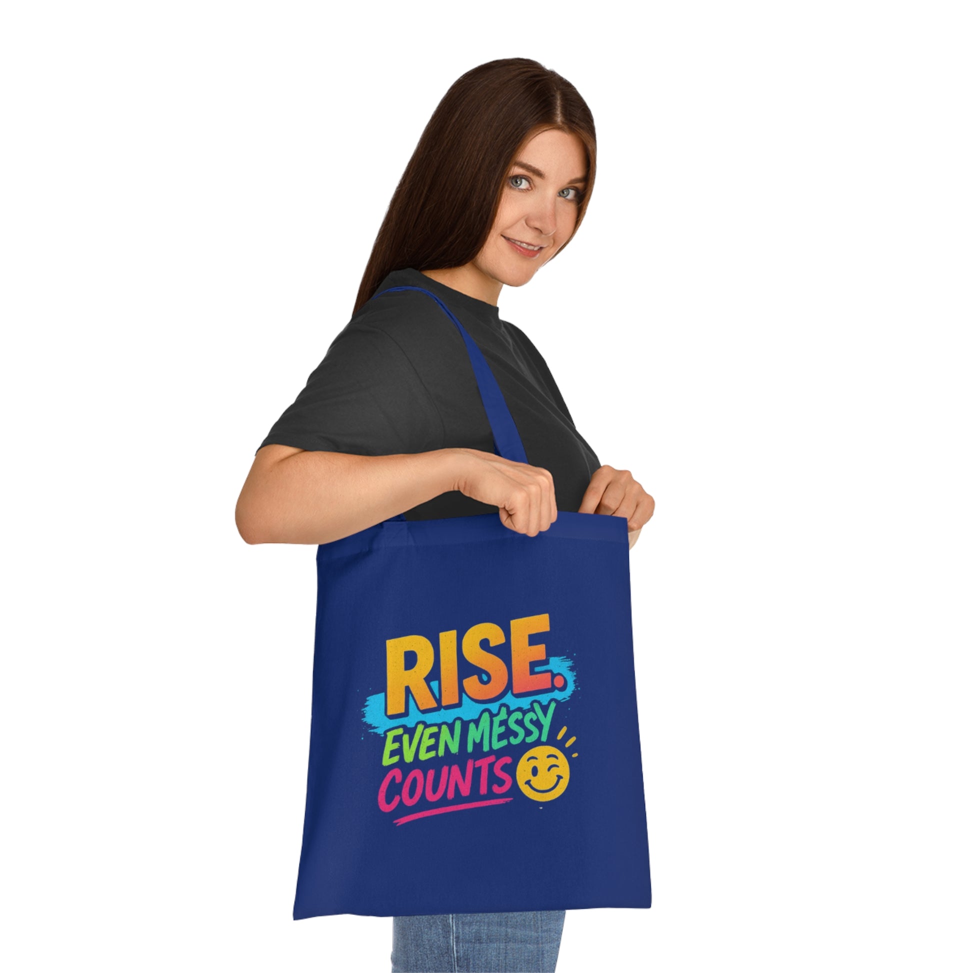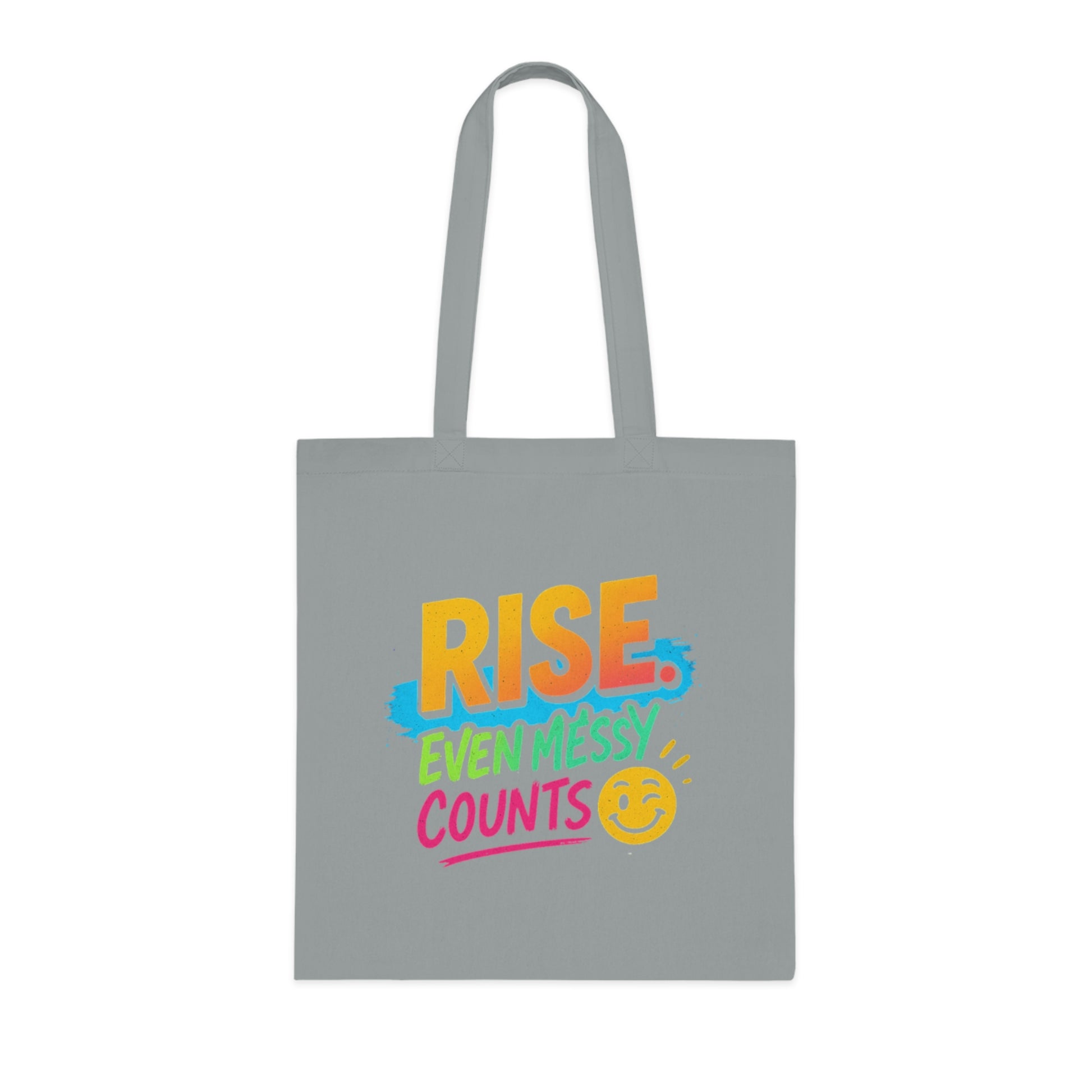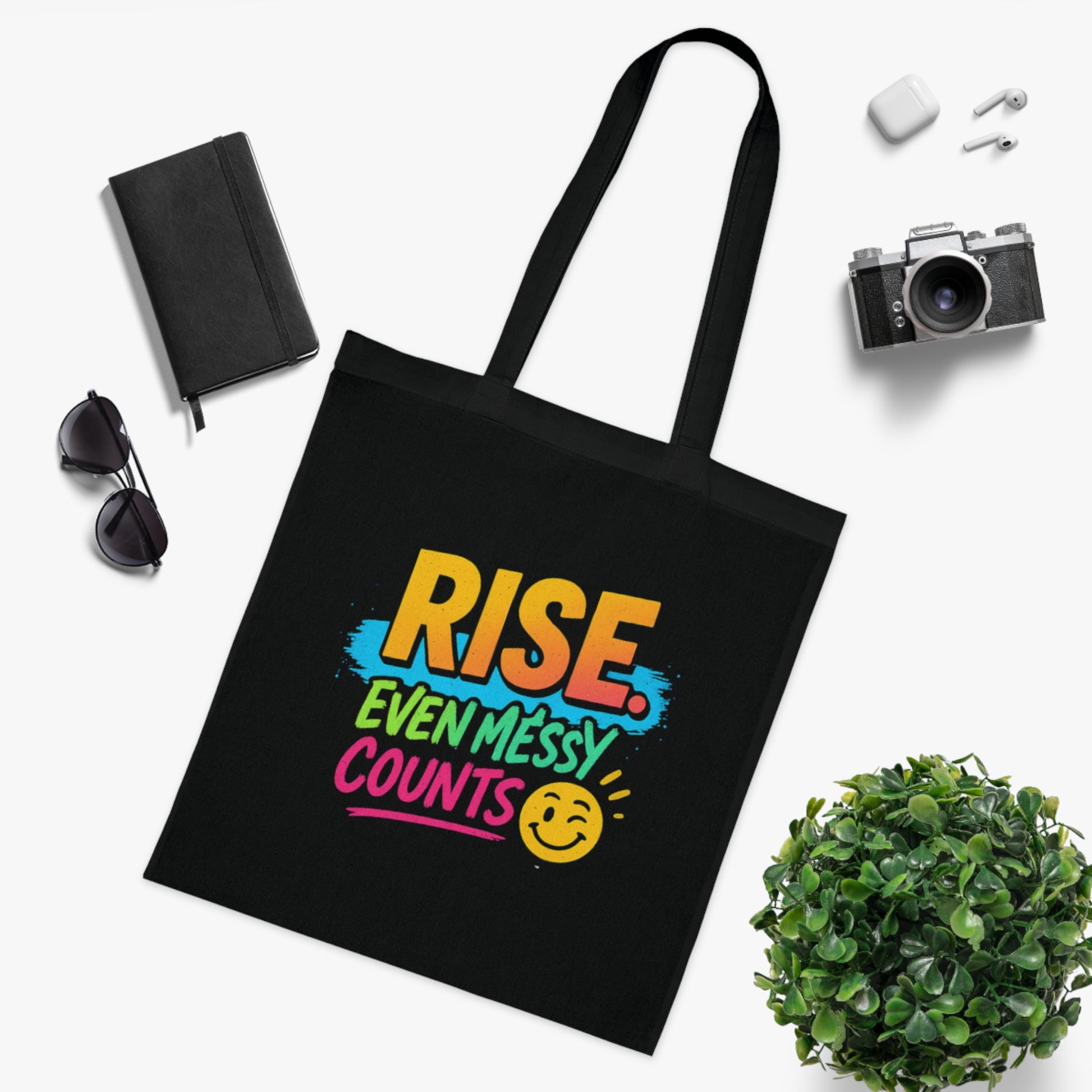 Motivational Cotton Tote: RISE. Even Messy Counts - Eco-Friendly Shopping Bag, Gift for Students, Gym Tote, Daily Use Bag, Beach Bag.