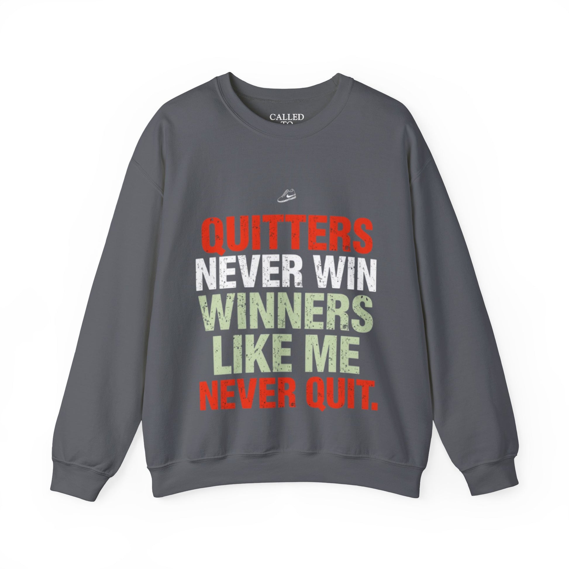 Quitters Never Win Motivational Sweatshirt | Determination Graphic Crewneck