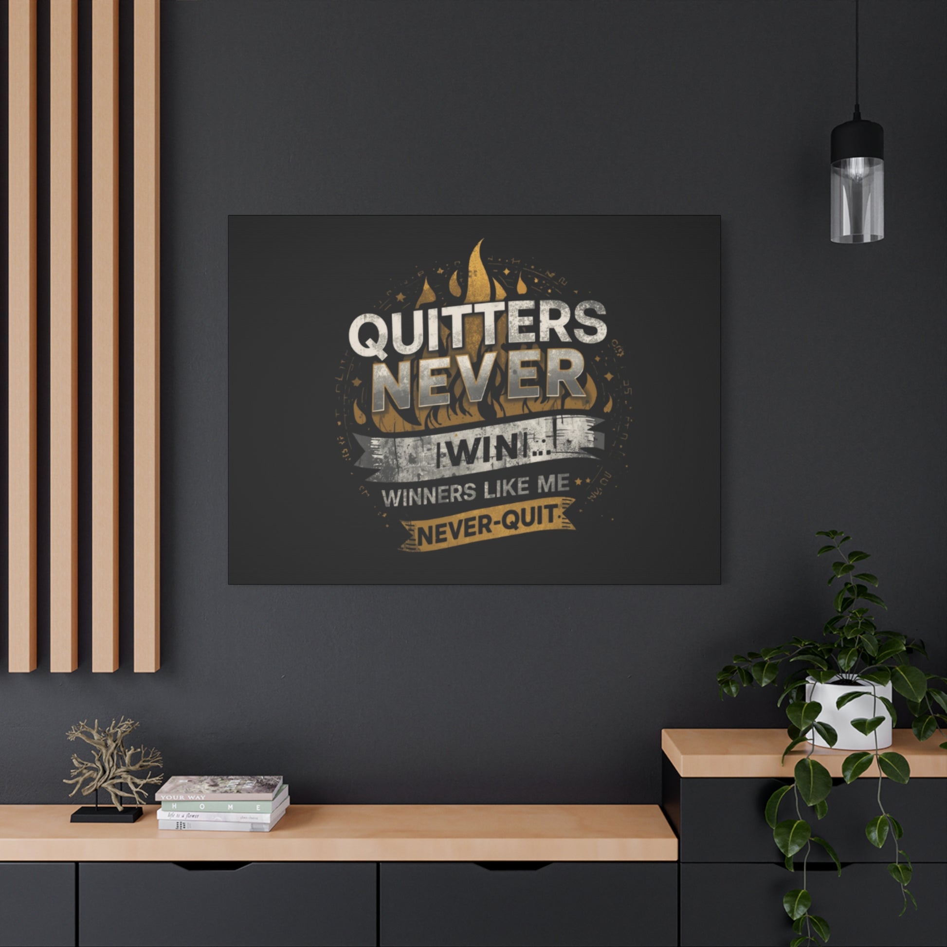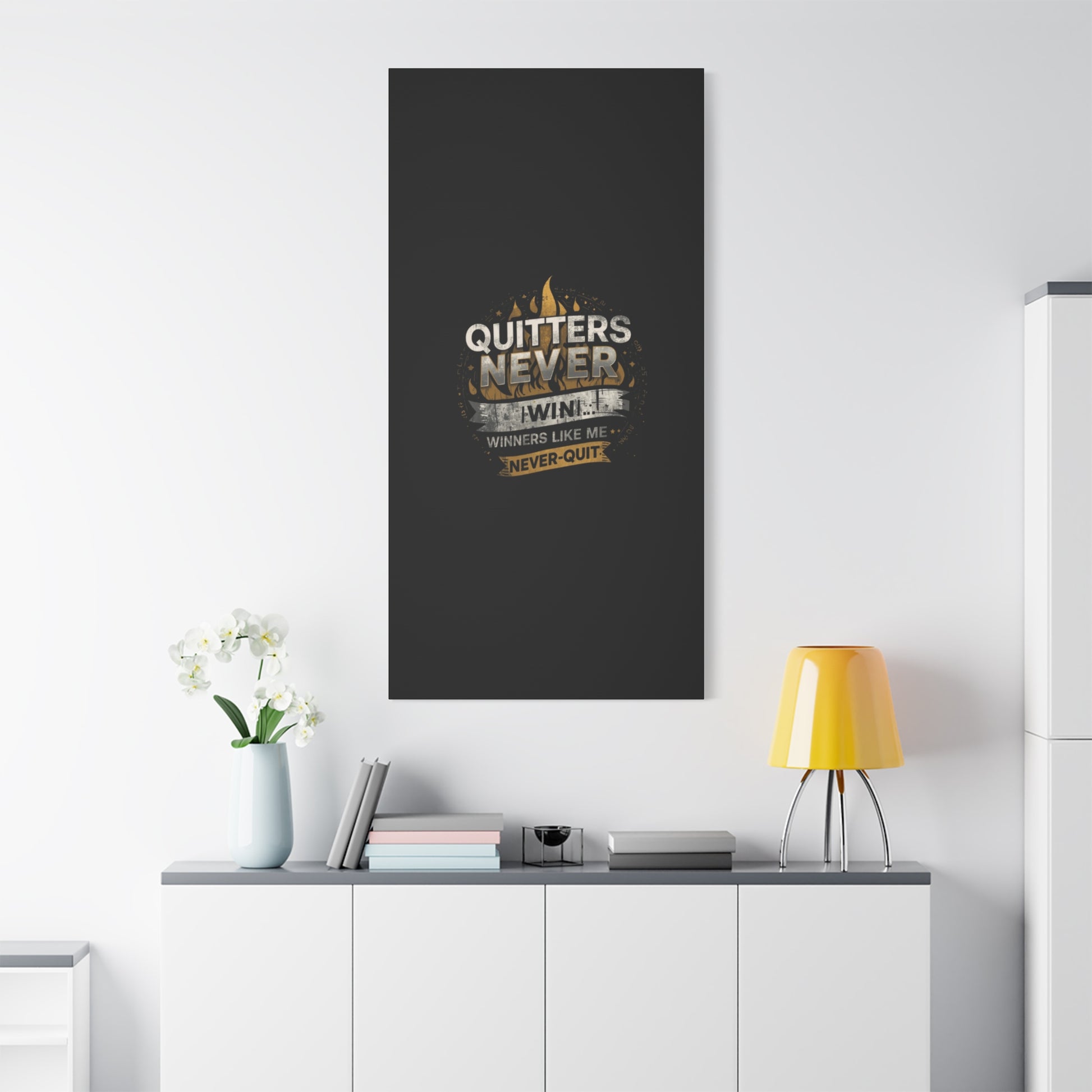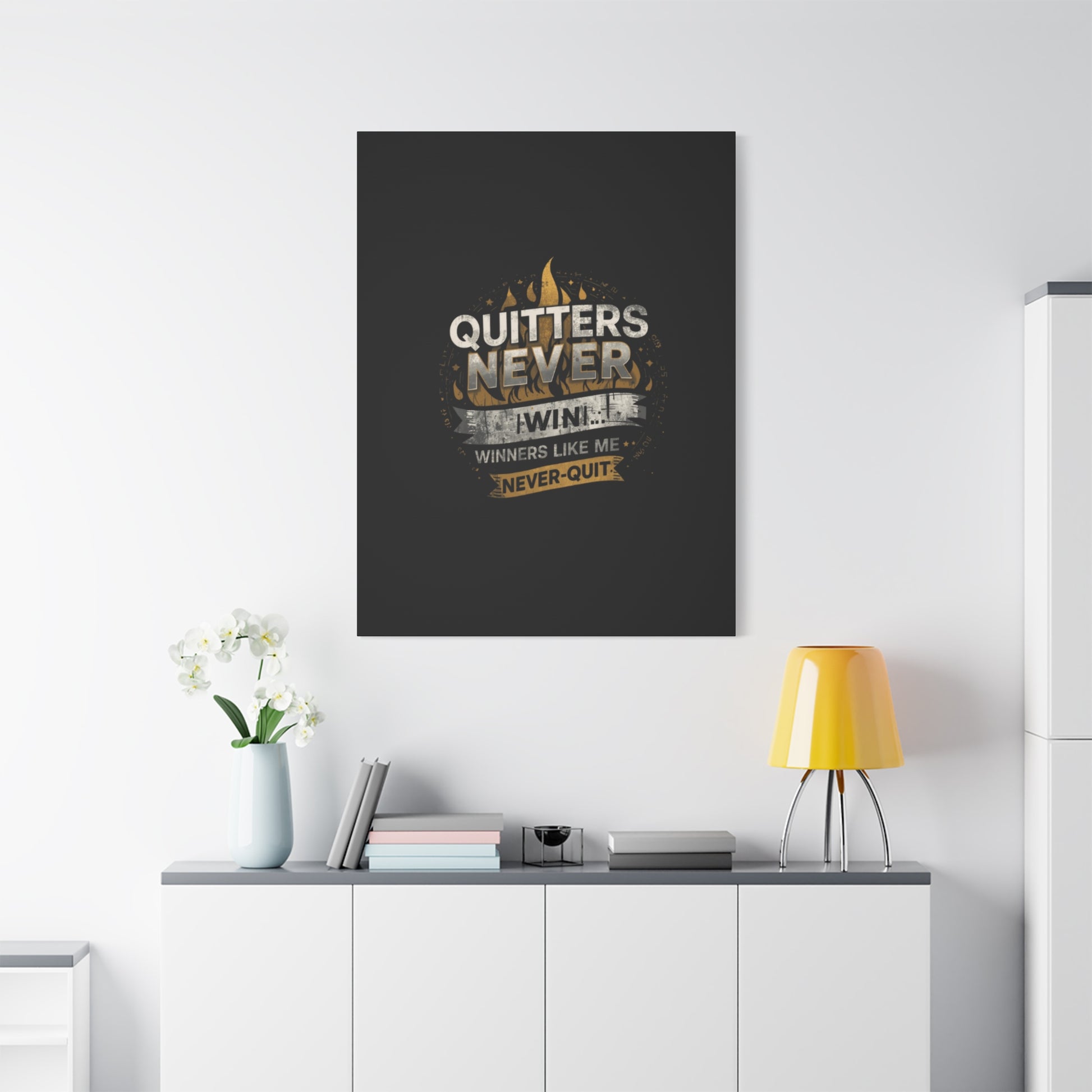 Quitters Never Win motivational wall art Canvas | Matte Stretched