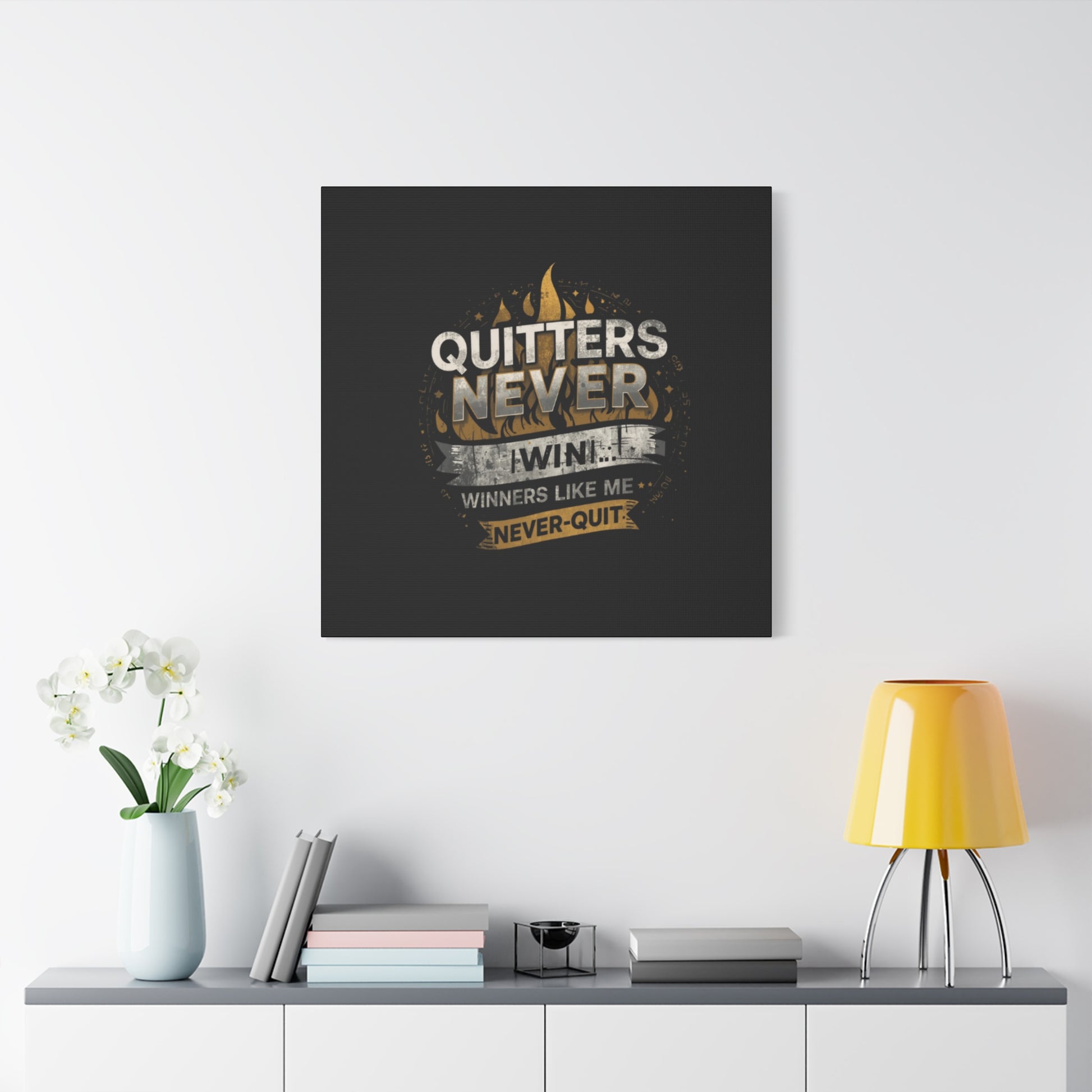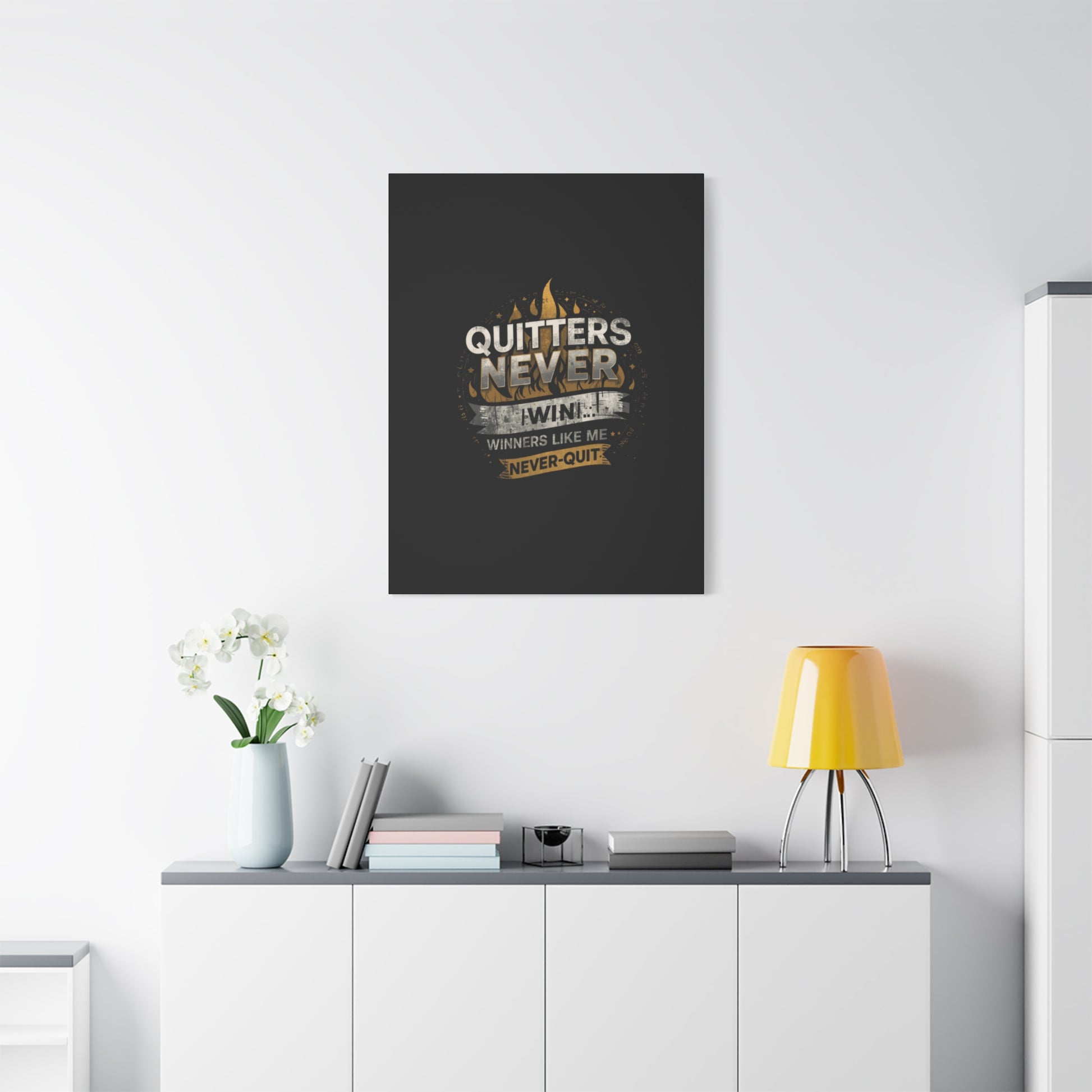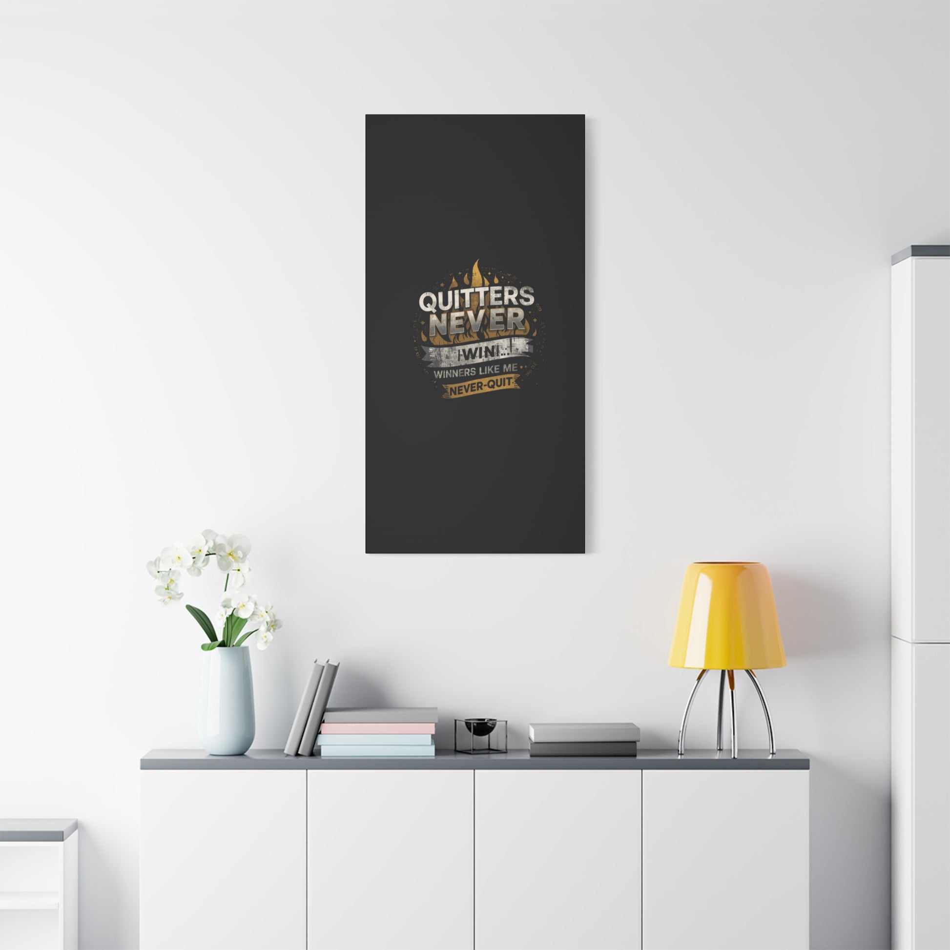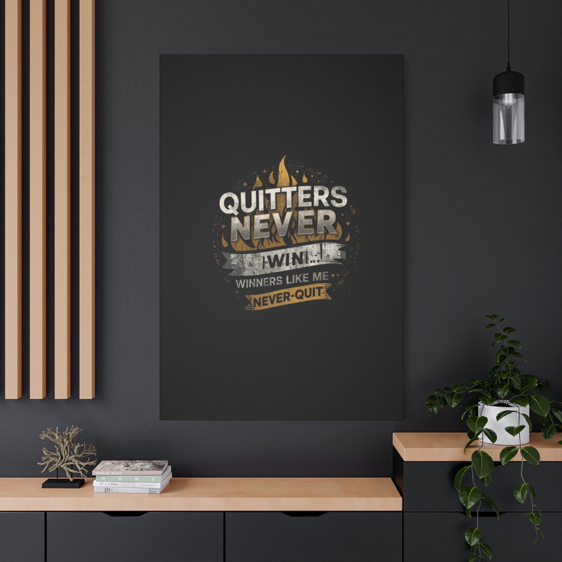 Quitters Never Win motivational wall art Canvas | Matte Stretched