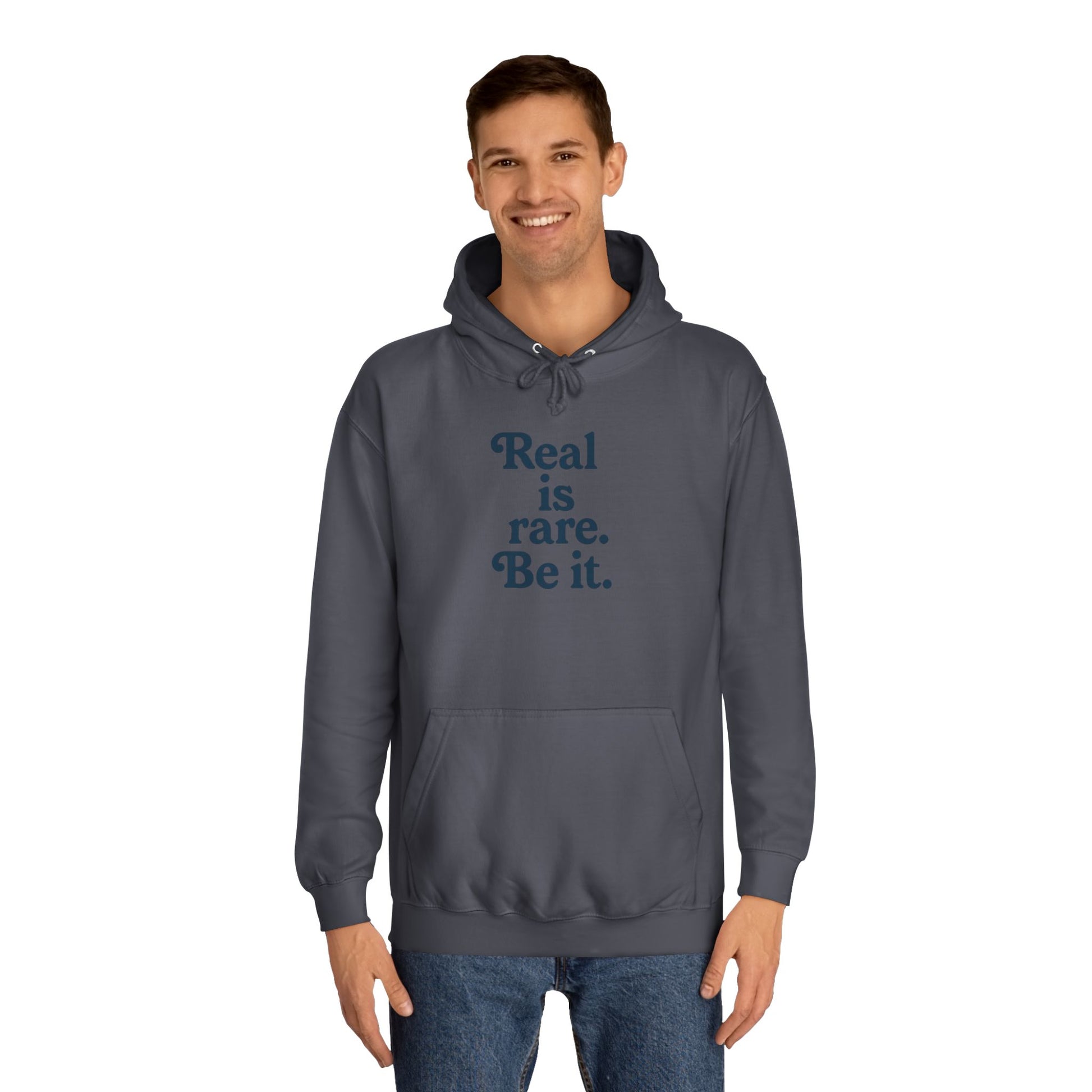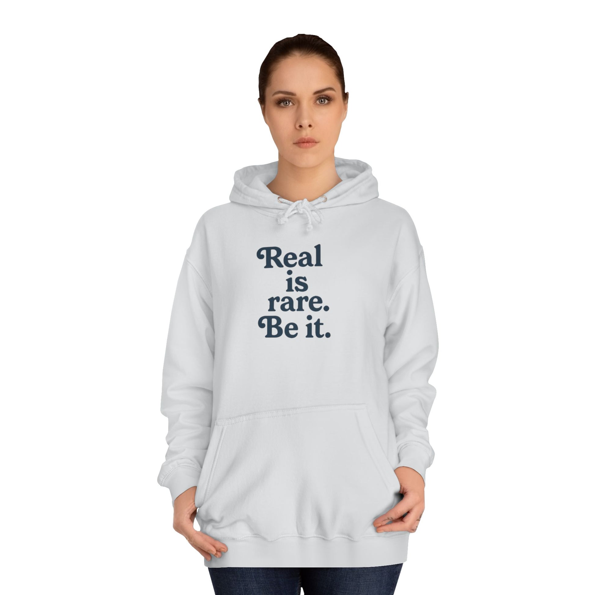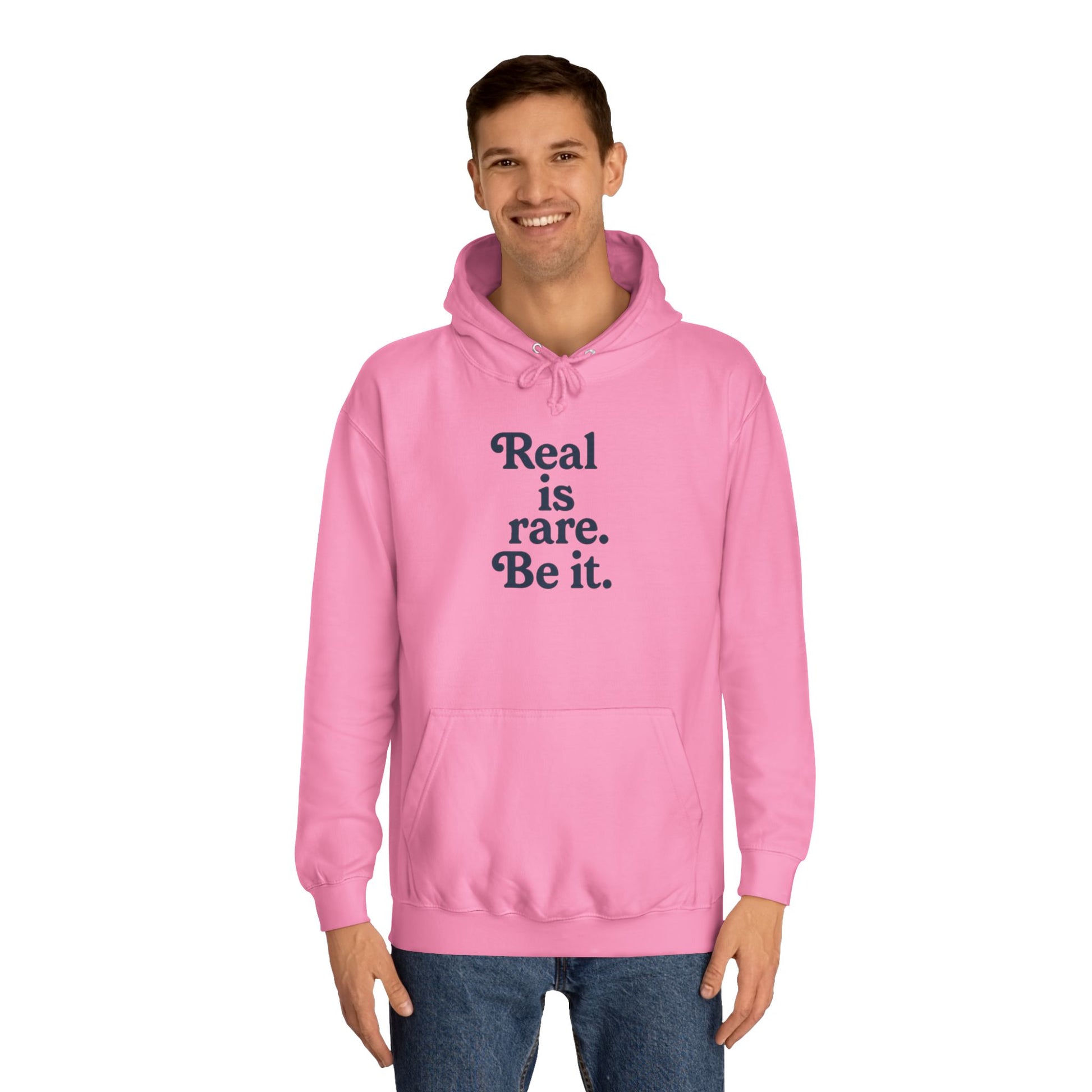 Real is Rare Unisex College Hoodie | Motivational Casual Wear, Gift for Students, Trendy Comfort