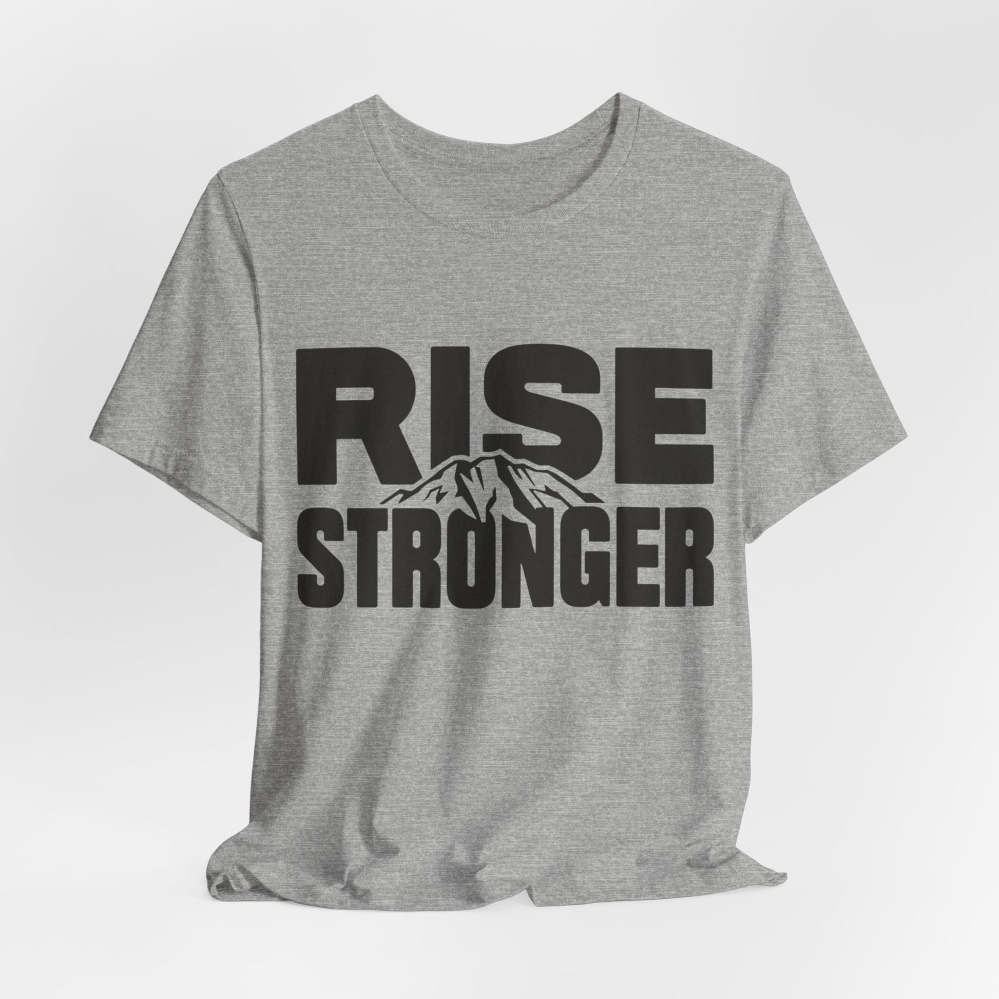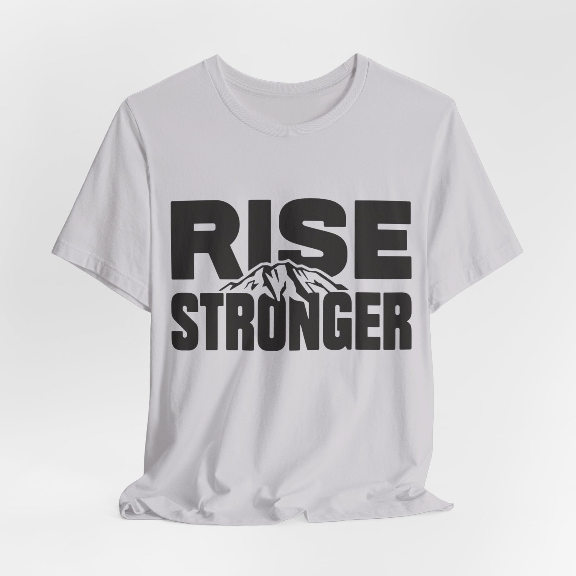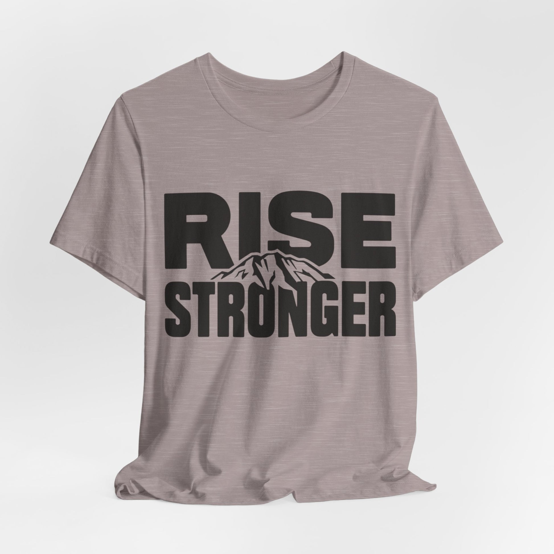 Rise Stronger Mountain Graphic Tee | Motivational Typography Shirt