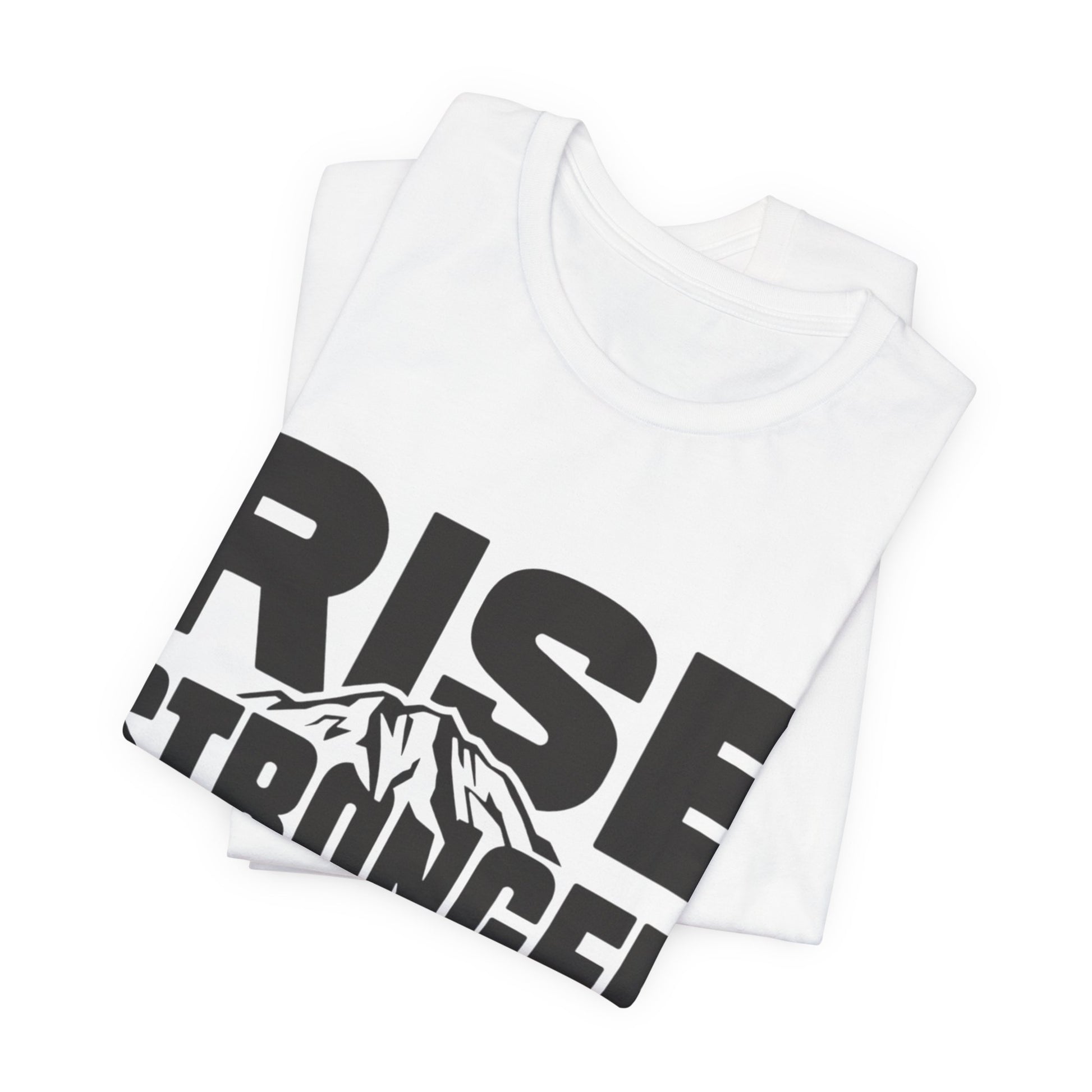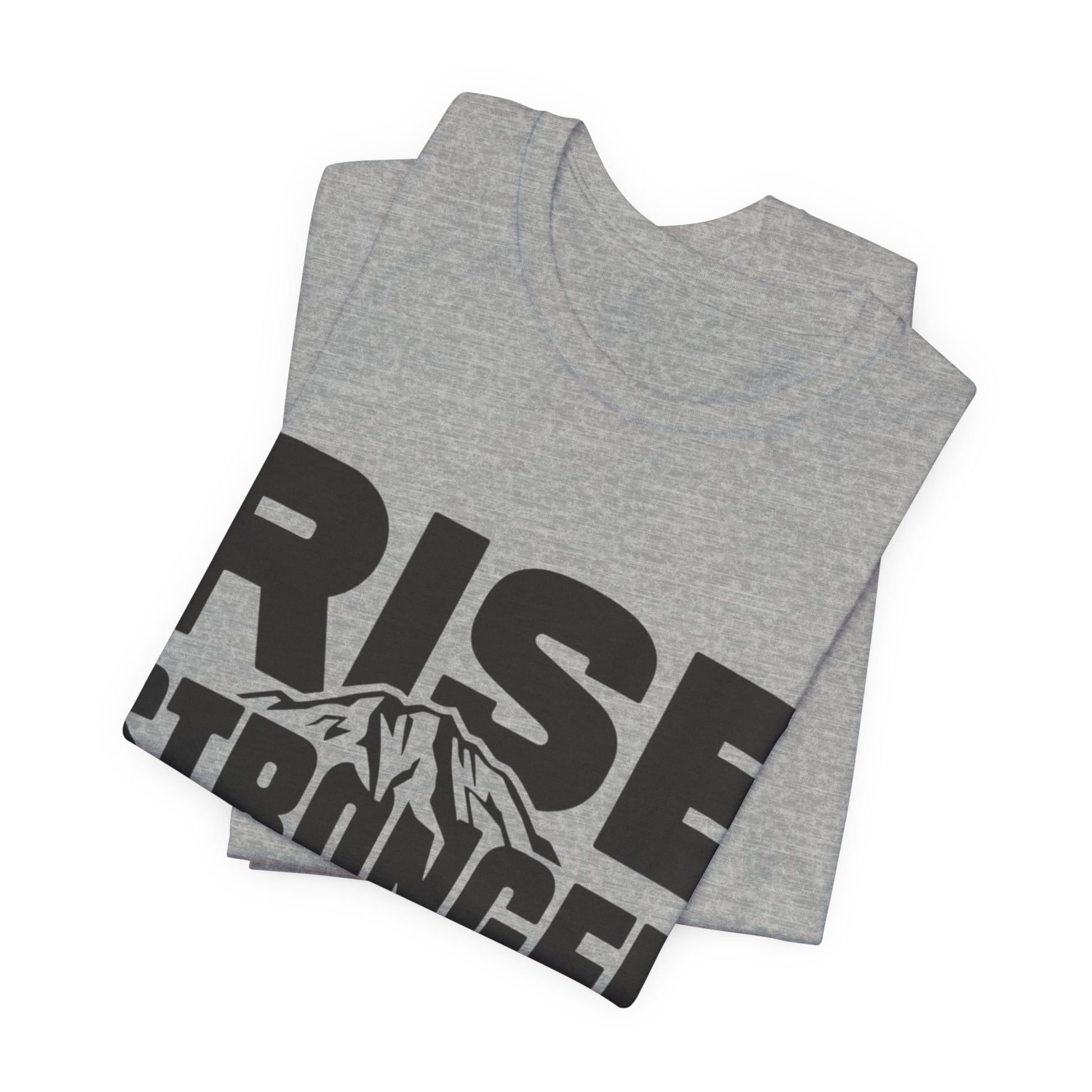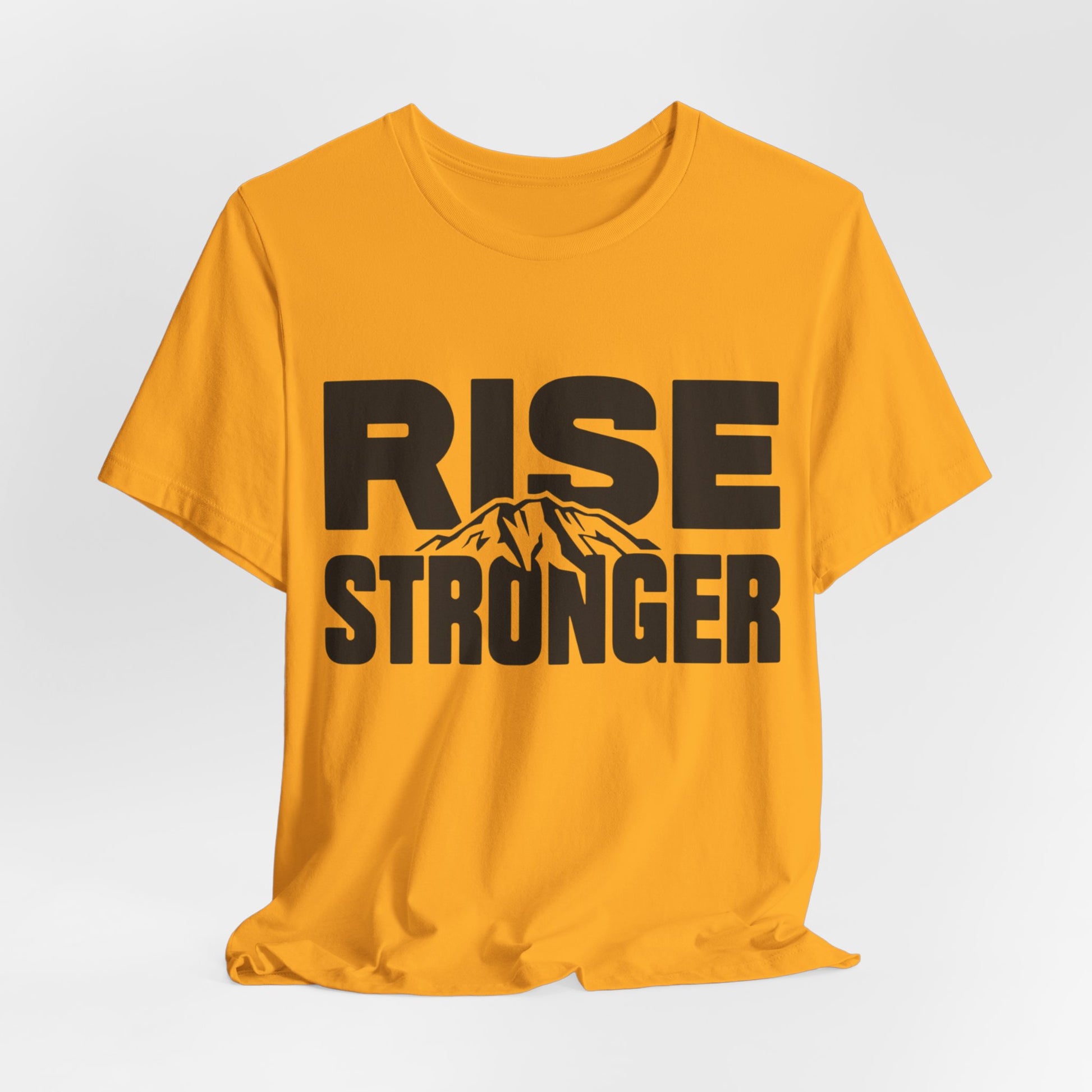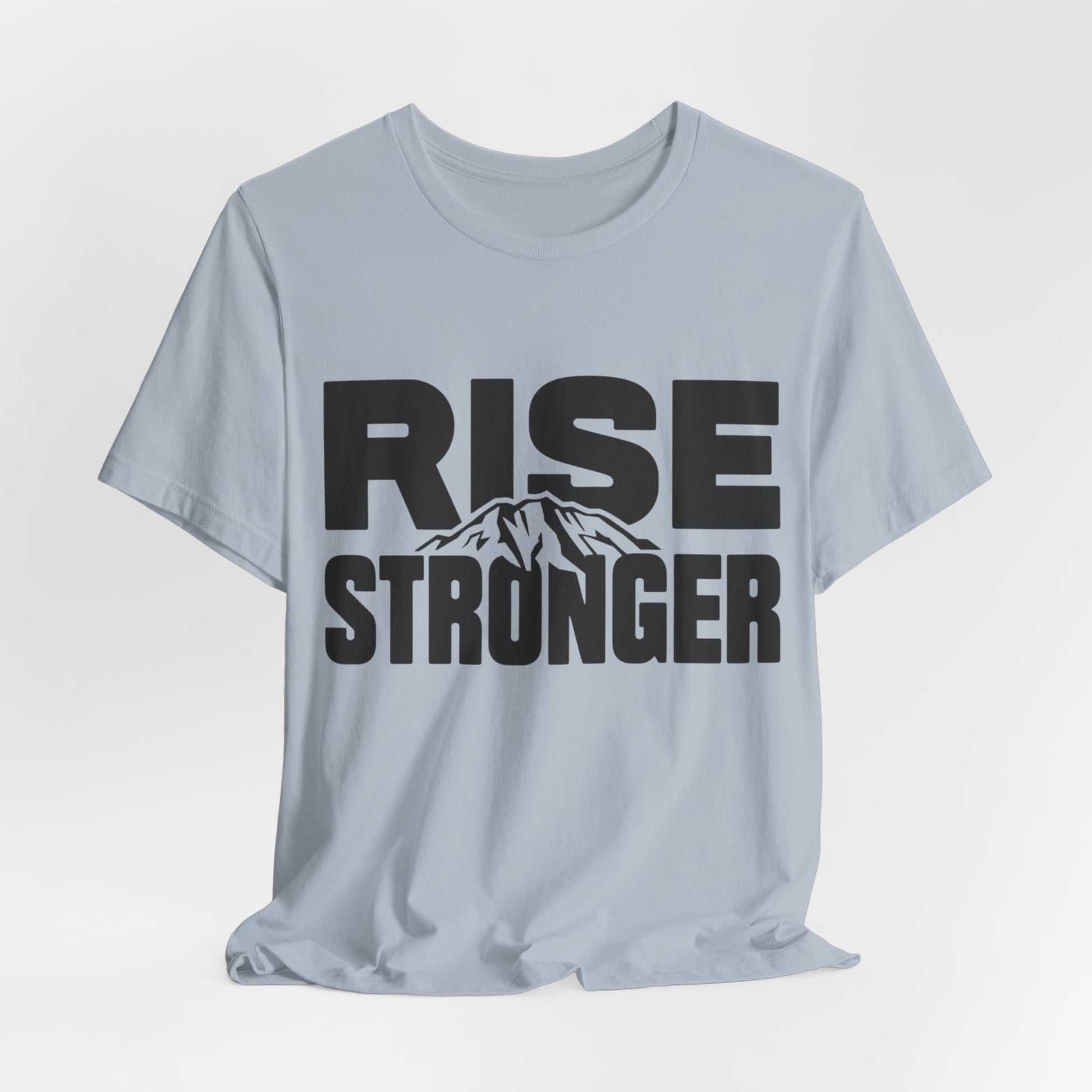 Rise Stronger Mountain Graphic Tee | Motivational Typography Shirt