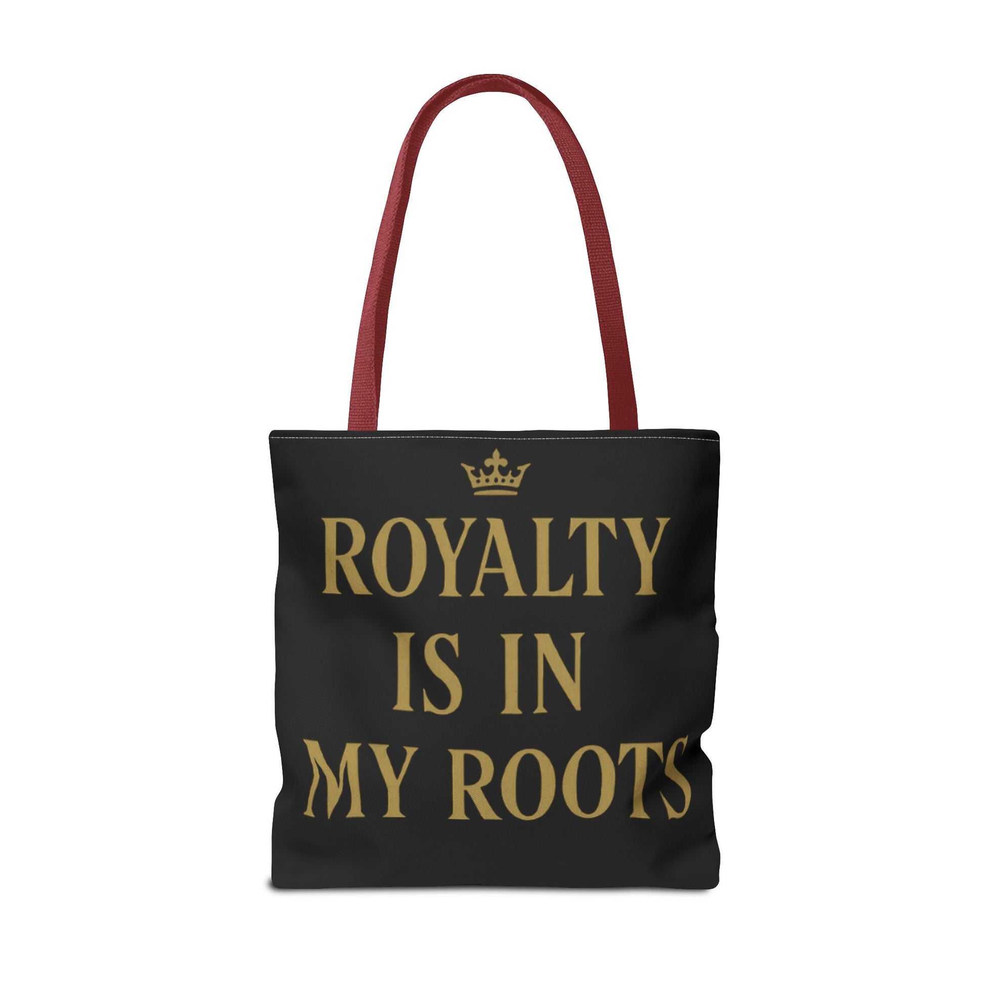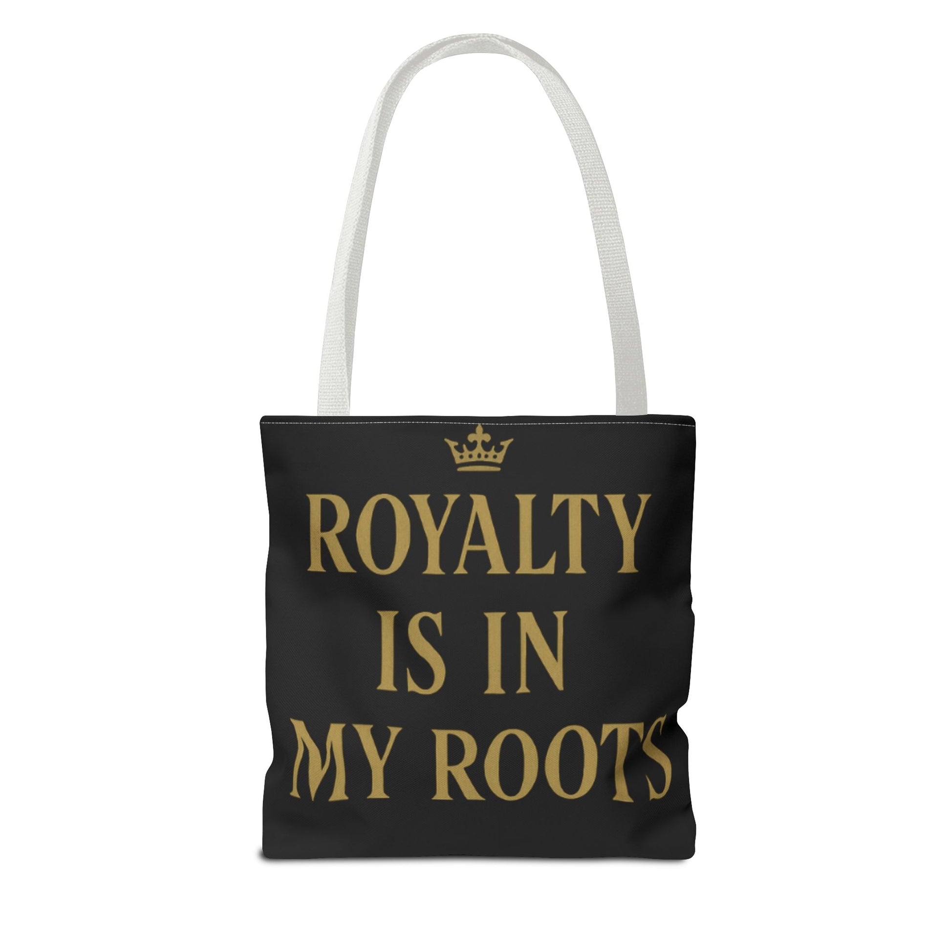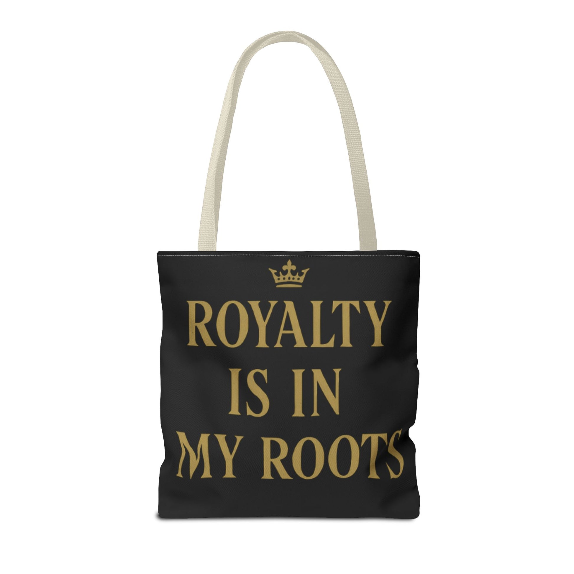 Royalty Is in My Roots Tote Bag - Stylish Eco-Friendly Carryall, Perfect Gift for Her, Black Gold Design, Daily Use, Travel Bag