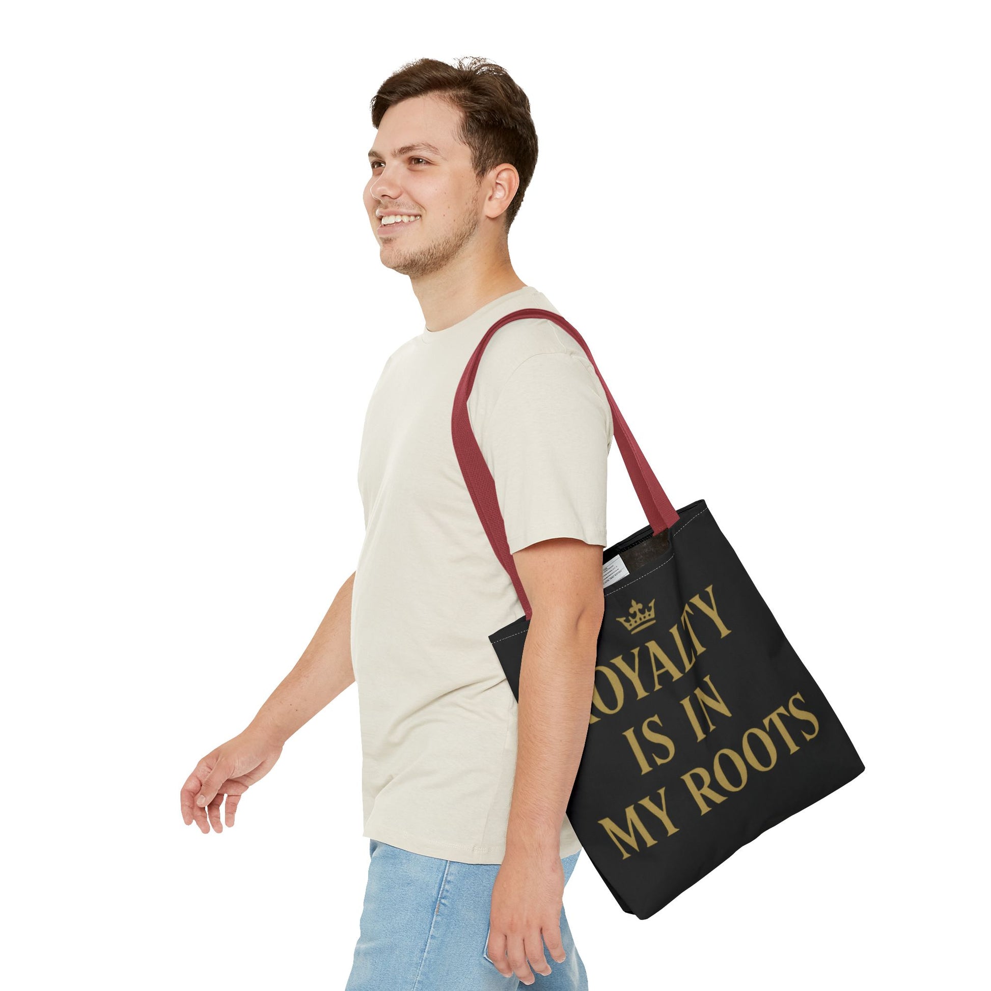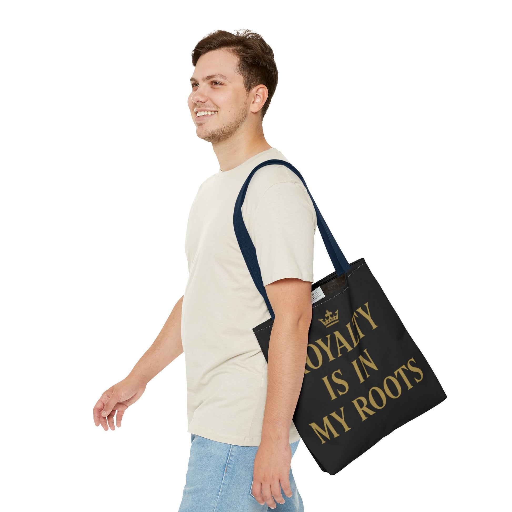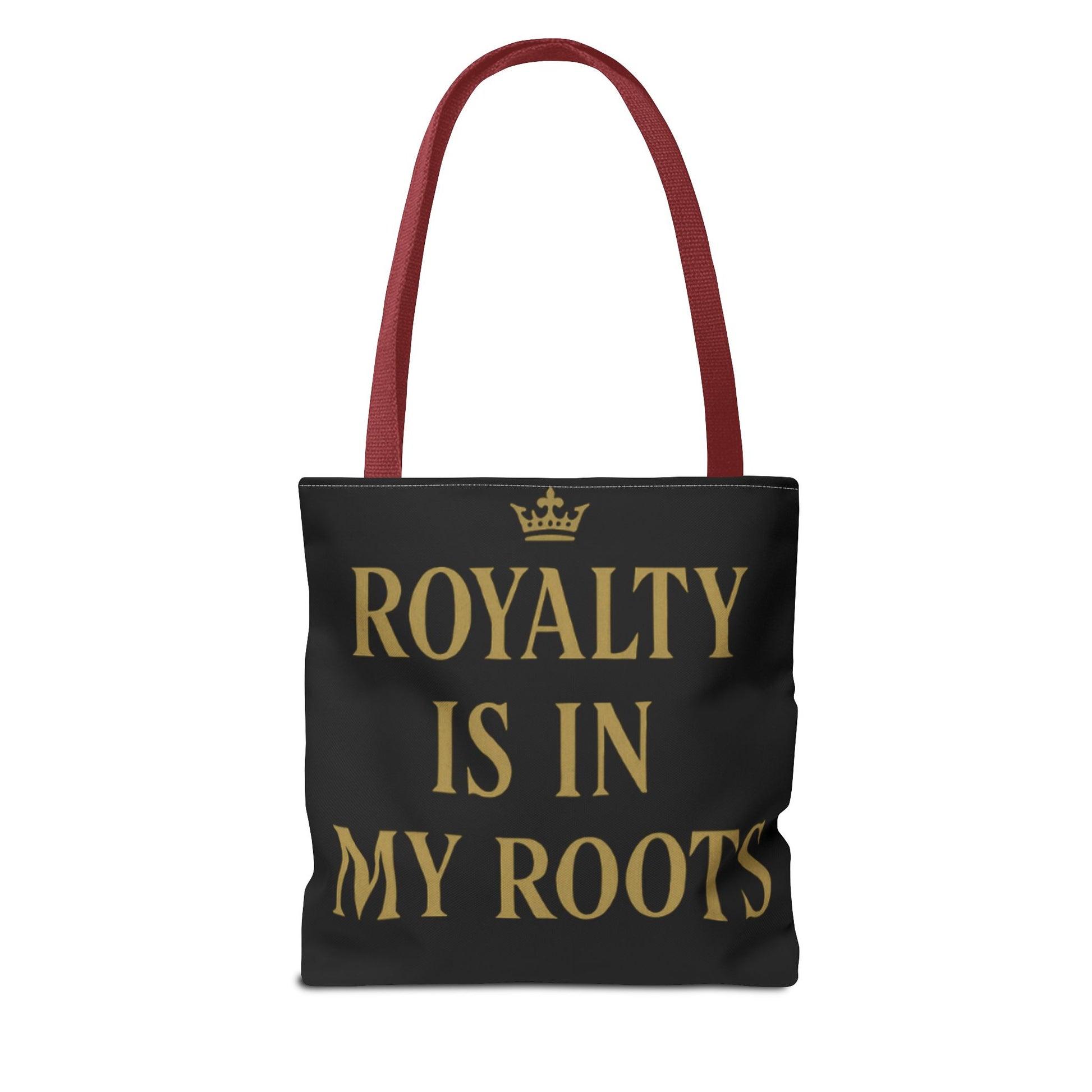 Royalty Is in My Roots Tote Bag - Stylish Eco-Friendly Carryall, Perfect Gift for Her, Black Gold Design, Daily Use, Travel Bag