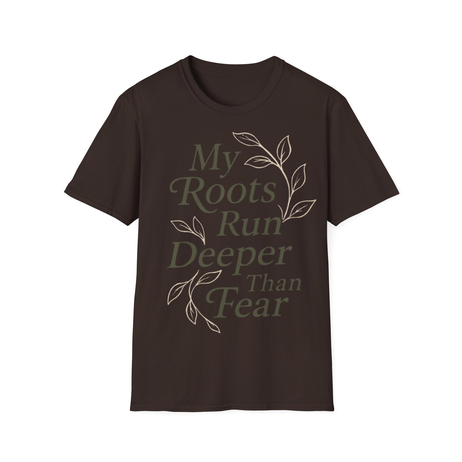 Embrace comfort and style with this unisex T-shirt featuring the inspiring quote, "My Roots Run Deeper Than Fear." Made from 100% ring-spun cotton, this lightweight tee offers a classic fit suitable for any occasion. Perfect for adults who value comfort, style, and meaningful messaging in their wardrobe. Ideal as a gift for birthdays, holidays, or to celebrate someone special in your life.