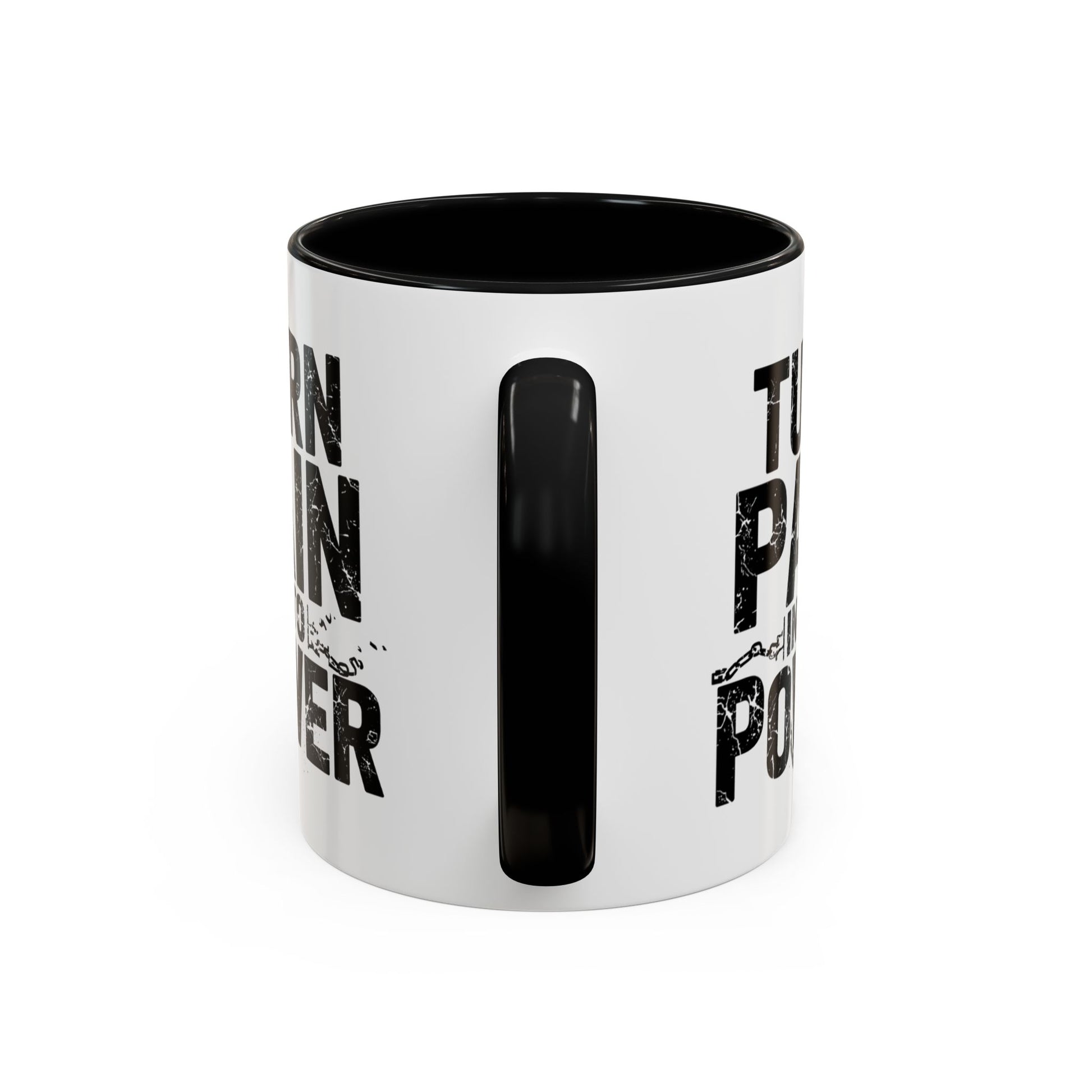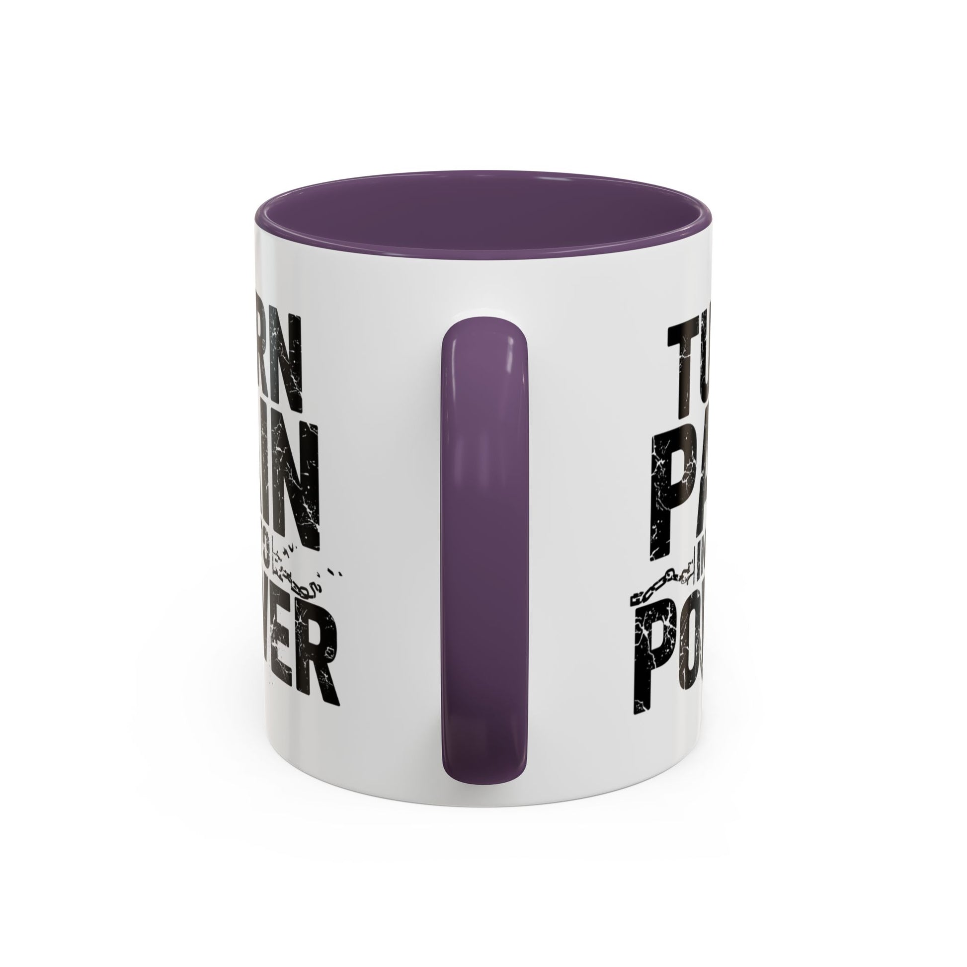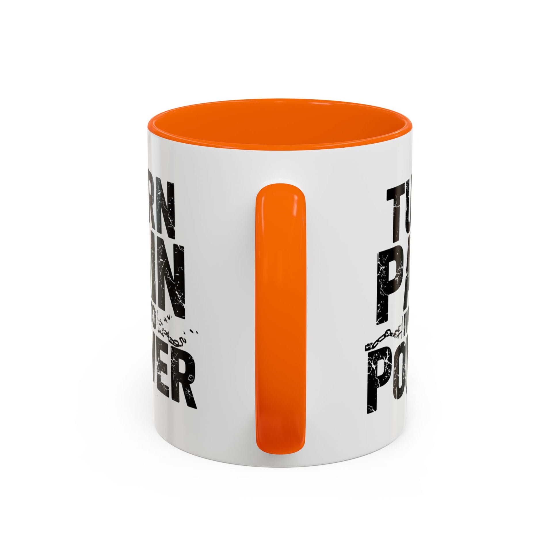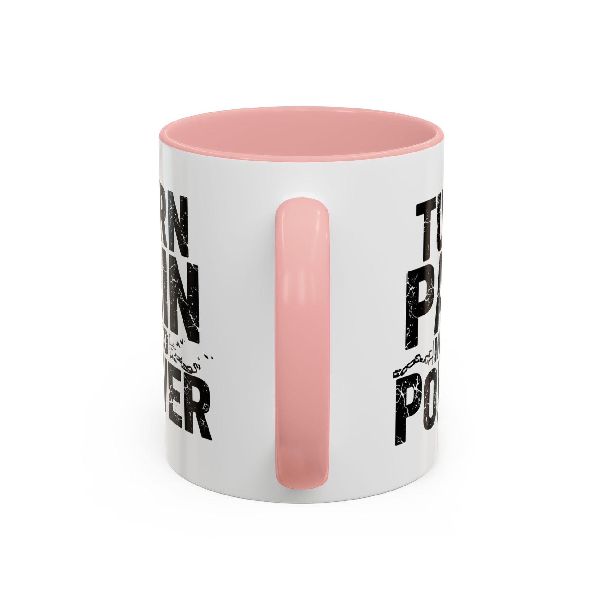 TURN PAIN INTO POWER Mug | Accent Coffee Mug, Colored Handle & Interior