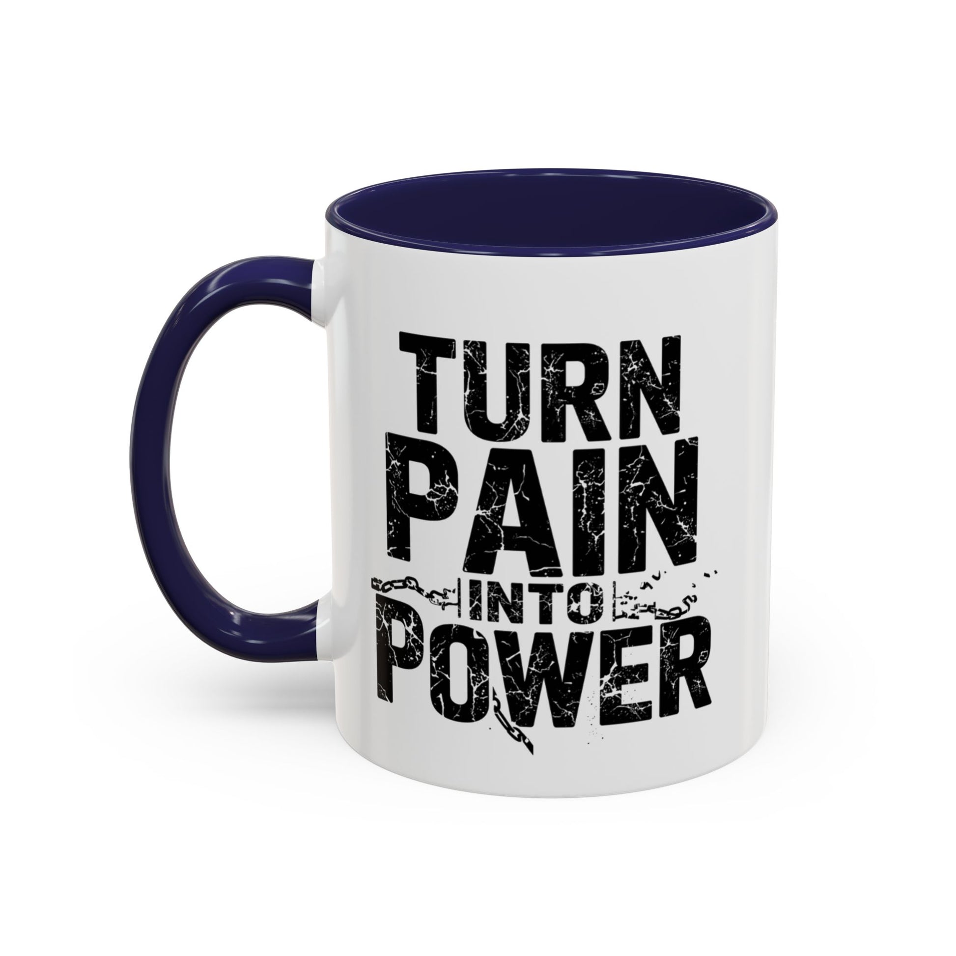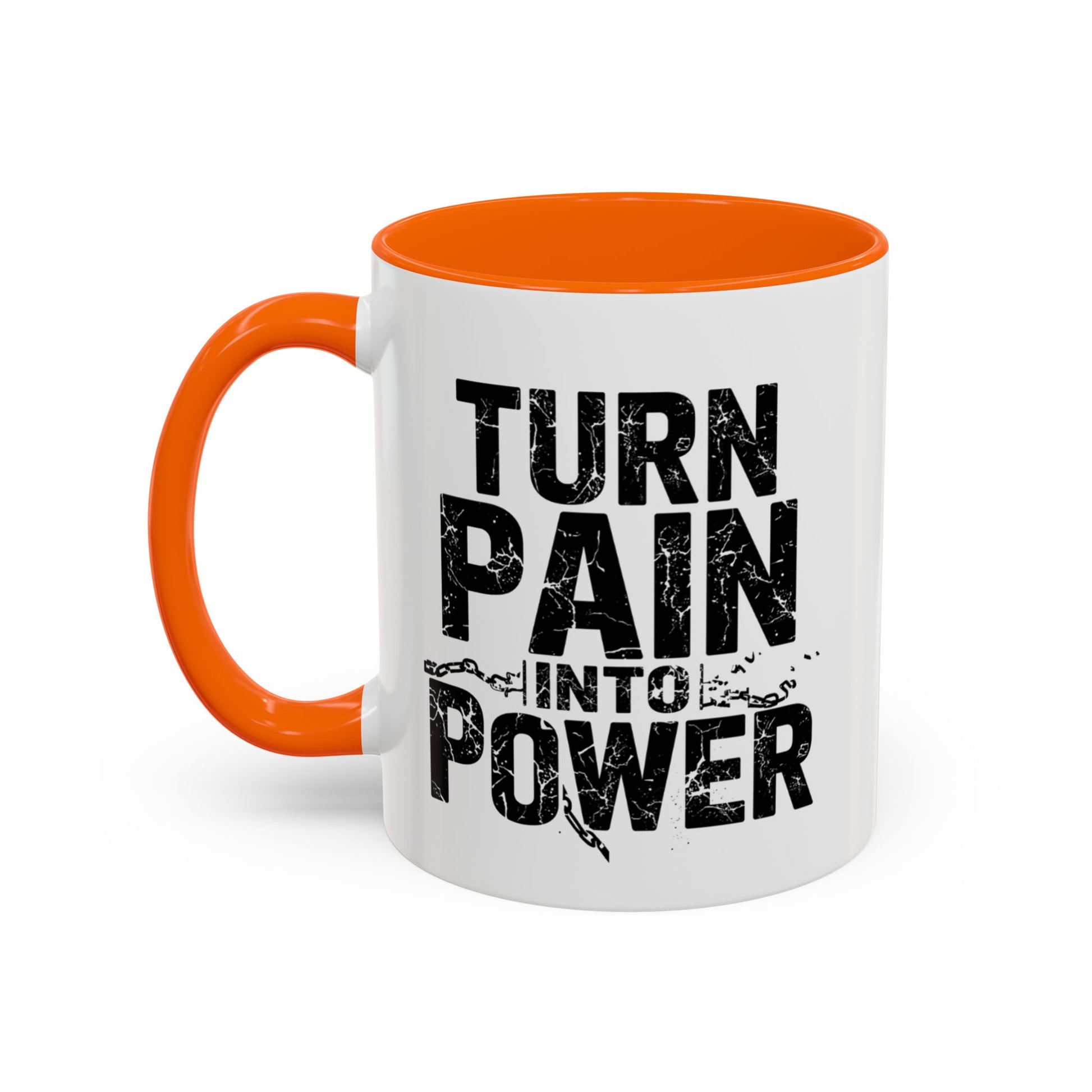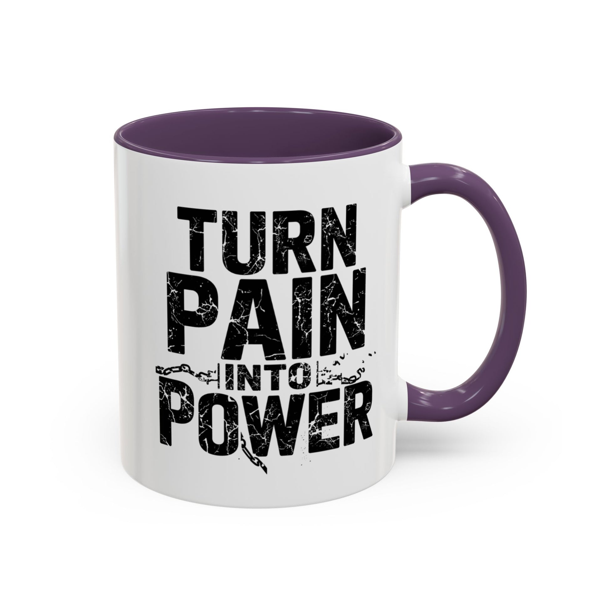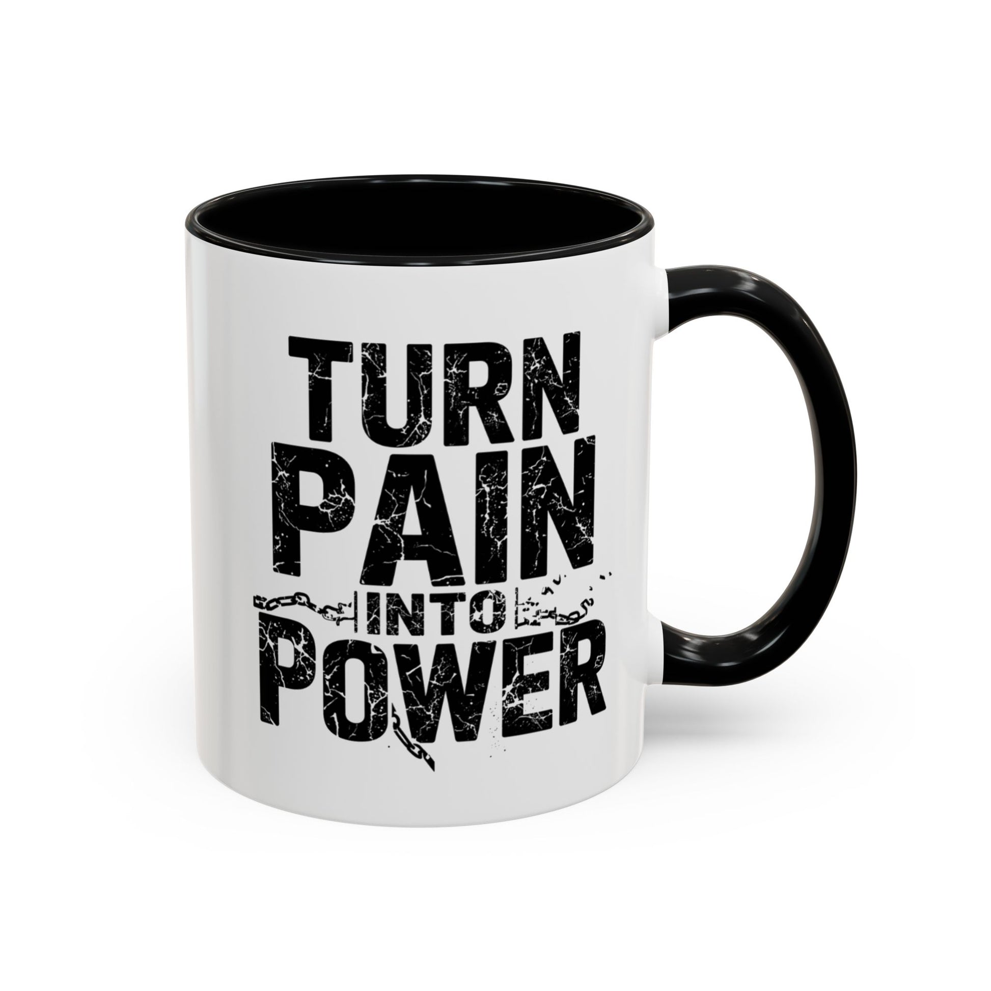 TURN PAIN INTO POWER Mug | Accent Coffee Mug, Colored Handle & Interior